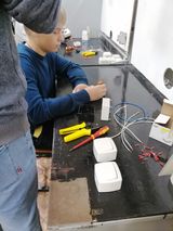 Школьники очень захотели сами создать что-нибудь несложное, и им было предложено смонтировать электрическую схему с использованием проходных выключателей. Вместе с Игорем Владимировичем была начерчена схема электрической цепочки и ребята приступили к сборке. Первые результаты появились не скоро. На первый взгляд простое задание оказалось не таким уж и простым, и ребята признались, что знаний и опыта им не хватает. Профессионализм руководителя помог преодолеть все трудности и все электрические цепочки были собраны.