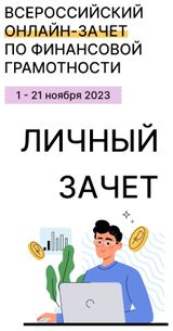 8 (81532) 7-57-12; 7-11-67 С 1 по 21 ноября 2023 года состоится шестой ежегодный Всероссийский онлайн-зачет по финансовой грамотности, который организует Банк России совместно с Агентством стратегических инициатив.