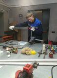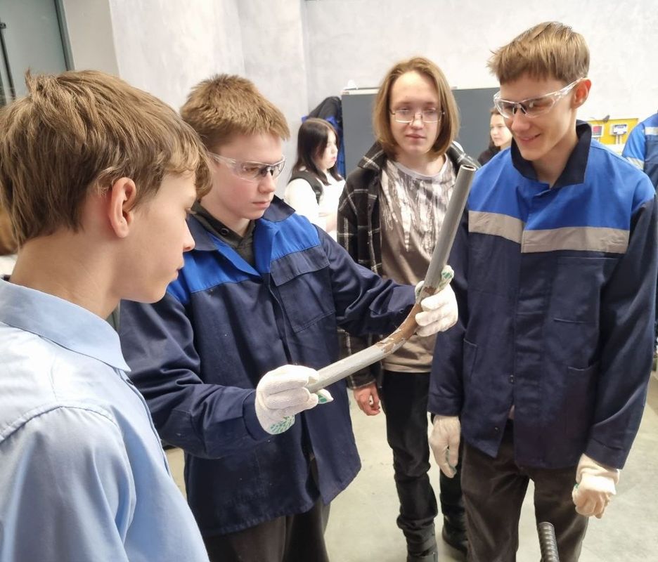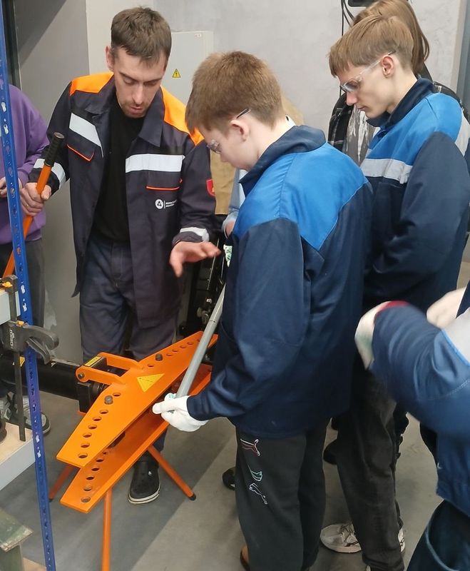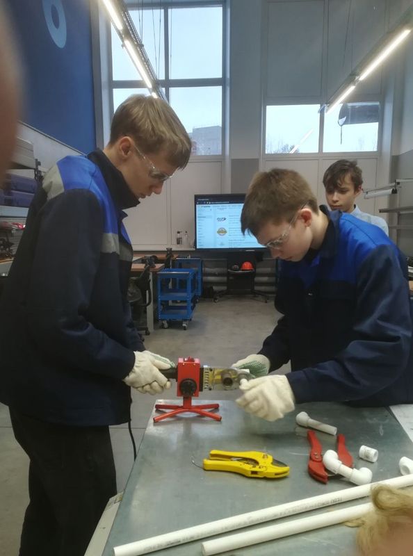 Ребята попробовали нарезать резьбу на металлических трубах. Произвели гиб трубы на специальном станке – трубогибе. Завершающим этапом стала сварка полипропиленовых труб.