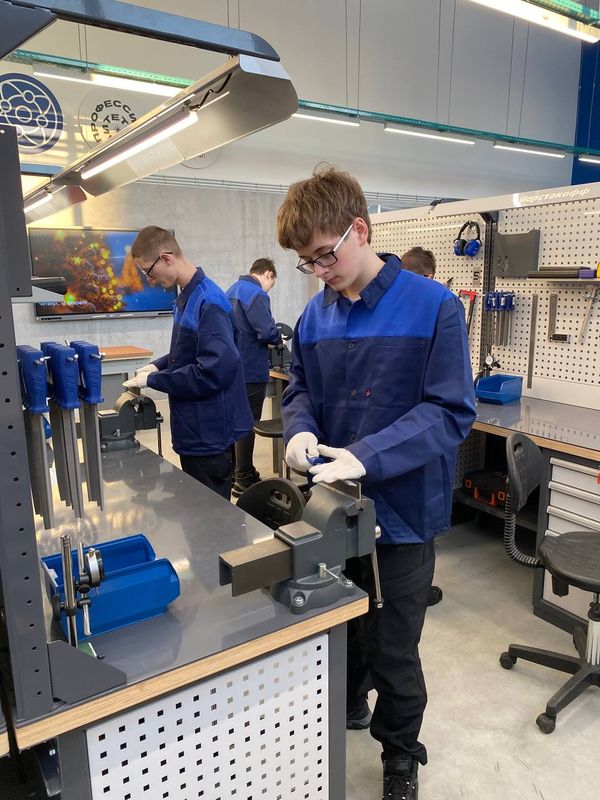 Ребята на полтора часа стали самыми настоящими слесарями! Прослушали инструктаж по технике безопасности; узнали приемы правильного использования ручного слесарного инструмента; применили на практике такие слесарные операции, как «опиливание», «разметка», «кернение» и «сверление»; узнали принципы работы самого современного, лазерного оборудования. По окончании занятия школьники получили в подарок брелки собственного производства!